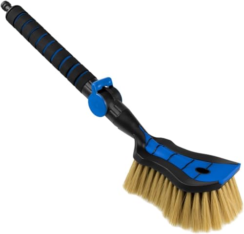 ToMPaR Brosse de Lavage I Brosse à Eau I avec raccord d'eau I Ouverture Rapide du Robinet d'eau I Poils Doux, Fins et délicats I Poignée Confortable I Voiture | Jardin | Longueur: 54 cm I Bleu