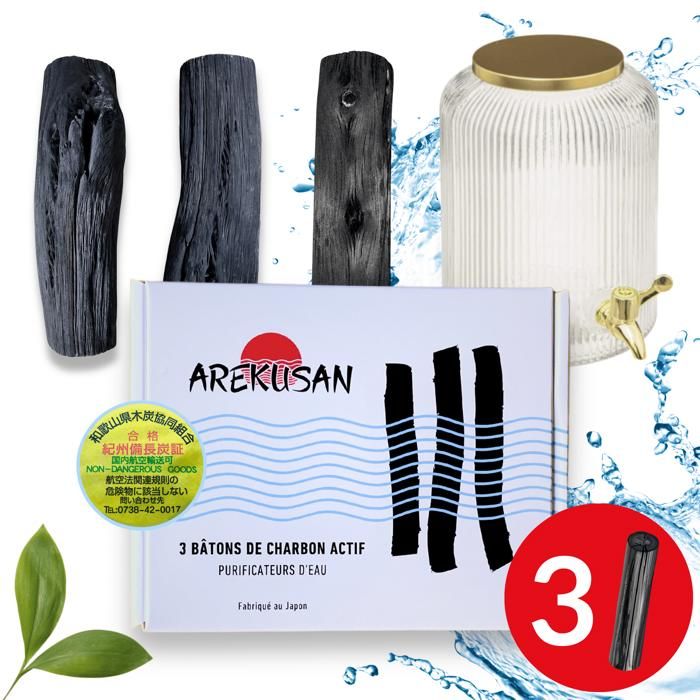Arekusan Kishu Binchotan 3 Gros Charbon actif purificateur grand volume eau authentique de Wakayama au Japon Filtre leau du robinet