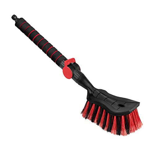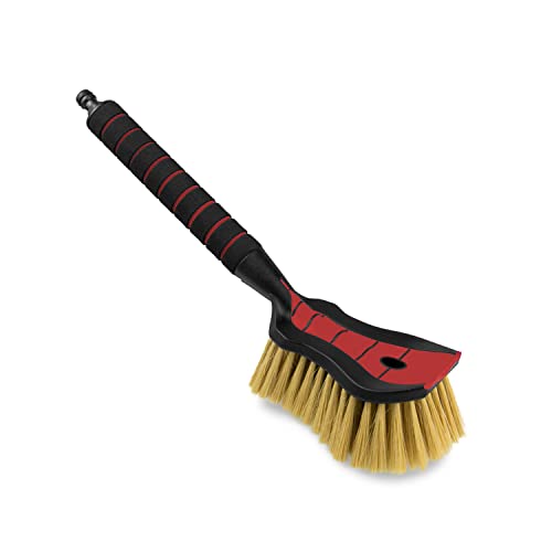 ToMPaR Brosse de Lavage I Brosse à Eau I avec raccord d'eau I Ouverture Rapide du Robinet d'eau I Poils serrés I Poignée Confortable I Voiture | Jardin | Longueur: 54 cm I Rouge