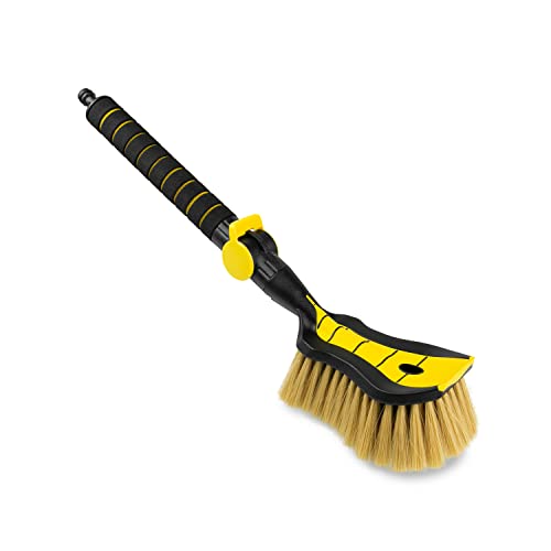 ToMPaR Brosse de lavage I Brosse à eau I Avec raccordement à l'eau I Ouverture rapide du robinet d'eau I Poils doux, fins et délicats I Poignée confortable I Voiture | Jardin | Longueur: 54 cm I Jaune