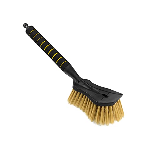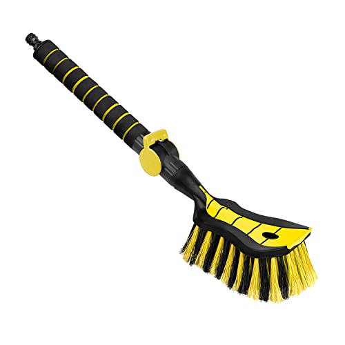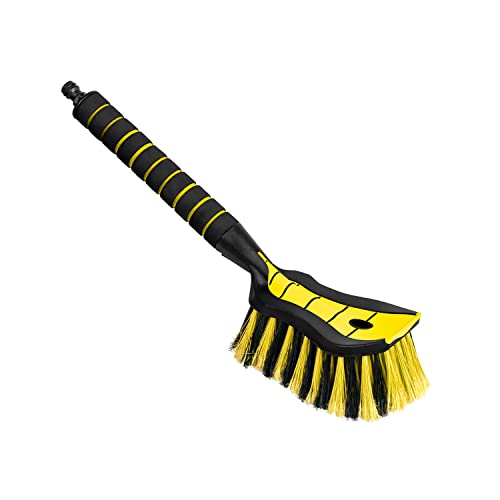 ToMPaR Brosse de Lavage I Brosse à Eau I avec raccordement à l'eau I Ouverture Rapide du Robinet d'eau I Poils serrés I Poignée Confortable I Voiture | Jardin | Longueur: 44 cm I Jaune