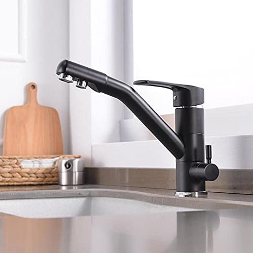 Robinets De Cuisine à 3 Voies Robinets D’Eau Extractible Filtre Évier Mélangeur Robinet Purificateur D’Eau Robinet D’Eau Style Moderne Bec Pivotant en Laiton à 360 °, Black