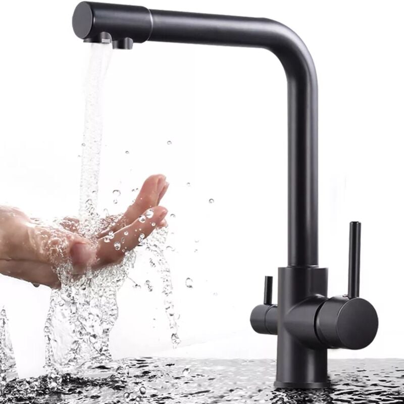 Senderpick - Robinet de cuisine 3 voies 2 en 1 pivotant à 360° pour purificateur d'eau Robinet de cuisine moderne noir
