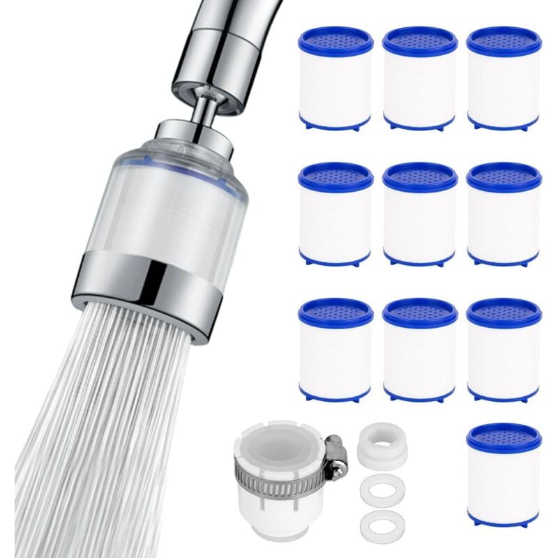 Filtre à Eau du Robinet, 360° Rotatif Filtre Anti Calcair avec 10 PP Filtres, Purificateur Eau Robinet, Filtre Eau Robinet Clair pour évier, Cuisine