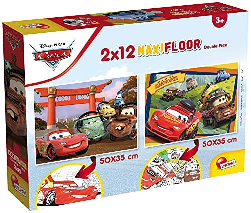 LISCIANI - PUZZLE DISNEY 2 en 1 - Cars - Maxifloor 50 x 35 Cm - 2 x 12 pièces - Double Face avec Verso à Colorier - Pour Enfants dès 3 ans - Feutres Inclus pour Coloriage- Fabriqué En Italie