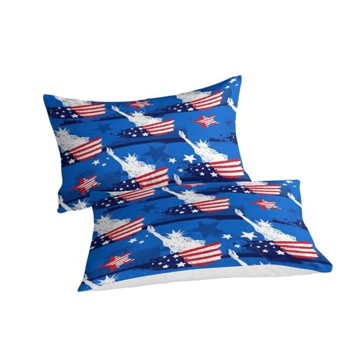 Drapeau des États-Unis Indépendance Ensemble De Literie, Housse De Couette, Parure De Lit 3D Imprimée, Design Statue de la liberté, Cadeau De Fête 3 Pièces Avec Fermeture Éclair Single(140x200cm)