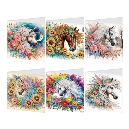 JISHSHAY Lot de 6 Diamond Painting Carte Anniversaire Cheval Diamant Painting Carte de Voeux Animaux Broderie Diamant Birthday Card Diamond Art Puzzle Adulte Point de Croix Greeting Cards