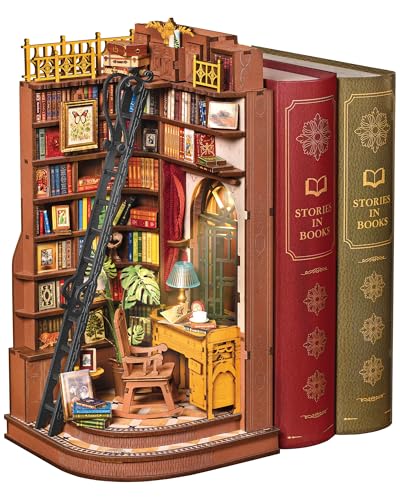 ROBOTIME Book Nook Maison Miniature à Construire avec Lampe, Booknook Puzzle en Bois 3D Diorama Décoration de Bibliothèque Cadeau de Vacances (Corner Study)