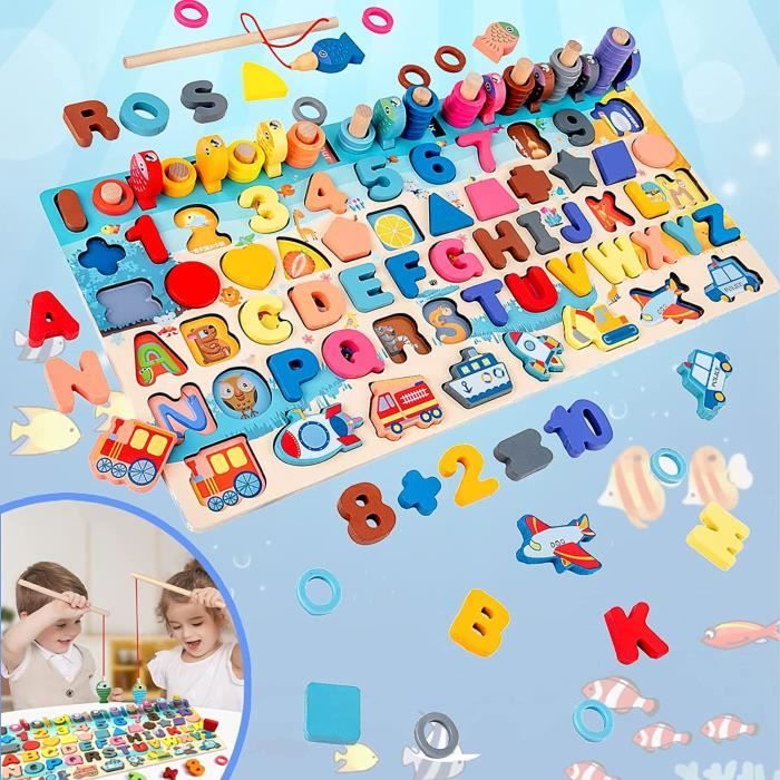 Puzzle en bois - Montessori - 7 en 1 - Apprentissage lettres et chiffres - Cadeau enfant - 3 ans+