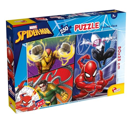 Lisciani - Puzzle Spider Man - 250 Pièces pour Enfants dès 7 Ans - Puzzle Double Face à Colorier avec Illustration au Dos - Format 50 x 35 cm - Marvel Spider Man - Activité Créative Enfant