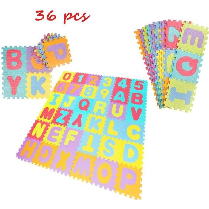 Tapis Puzzle en Mousse pour Bébé SHE - 36 Pièces Alphabets + Chiffres - Intérieur Mixte - 32cm x 32cm x 0.9cm