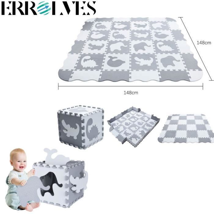 Tapis Puzzle Mousse Bébé Enfant ERROLVES - Animaux - 148x148x1cm - Gris - Evolutif - Mixte
