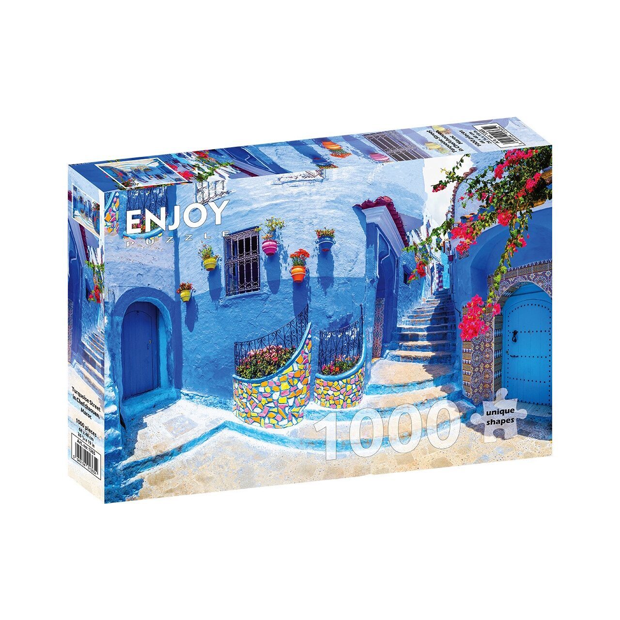 ENJOY Puzzle Rue turquoise à Chefchaouen, Maroc 1000 pièces