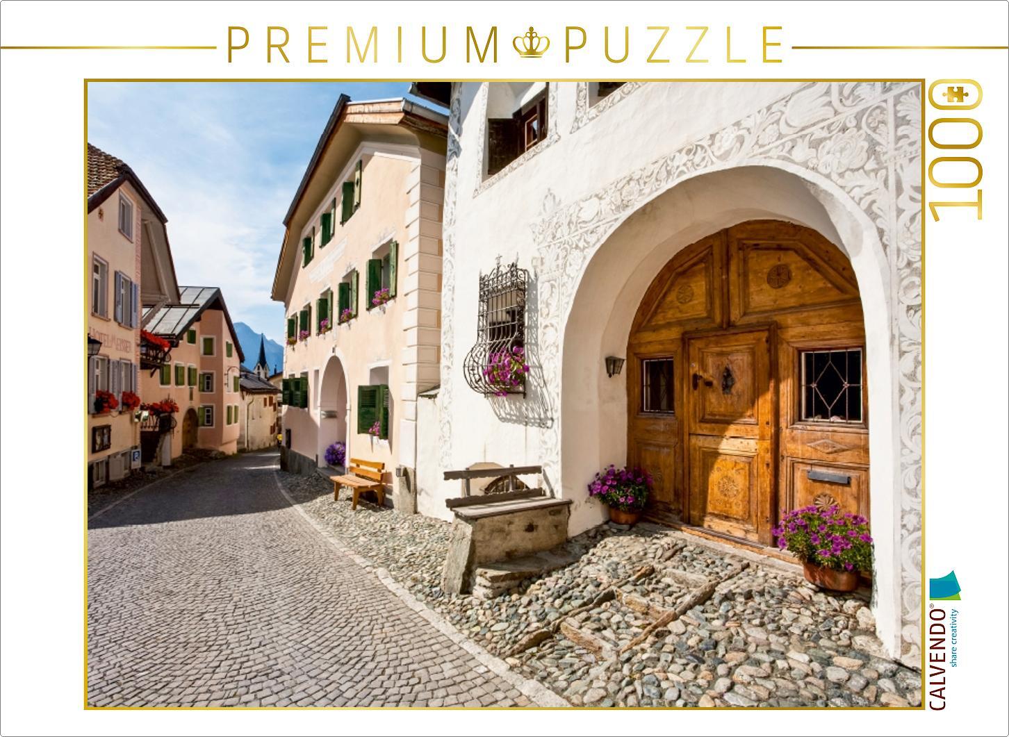 Calvendo Maisons typiques de l'Engadine dans la rue du village de Guarda 1000 pièces puzzle horizontal 640x480mm, Dieterich Werner ; 7453862