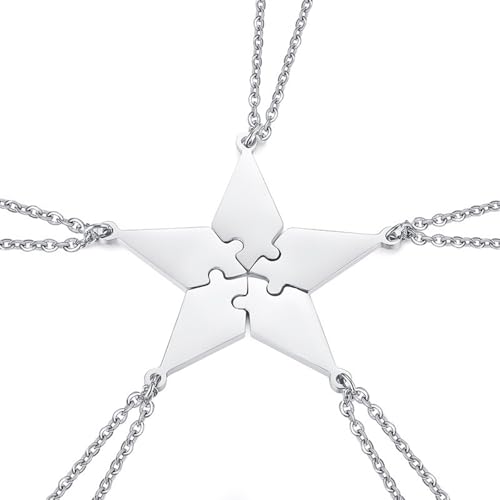Collier d'amitiés pour 5, Collier bff pour 5 bijoux stitch fille Puzzle collier stitch fille cadeau bff pour homme/femme/adolescent cadeau de famille pendentif étoile en acier inoxydable (Pour 5)