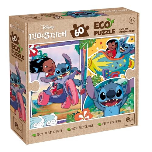 Lisciani - Puzzle Disney Stitch - Puzzle 60 Pièces Double Face pour Enfants dès 4 Ans - Verso À Colorier - Format 50x70 cm - Activité Manuelle Stitch - 100% Recyclable - Idée Cadeau Anniversaire