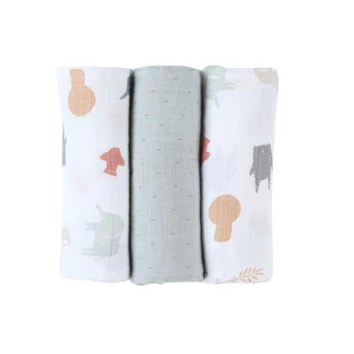 Noukie's - Lot de 3 Langes Bébé 70x70 cm – Allaitement - Bavoir épaule - Lange pour Change - Couverture légère bébé - Pare Soleil Poussette - Doudou - Accessoire maternité