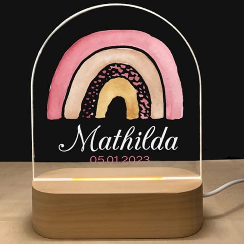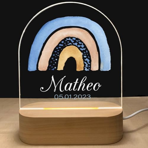 GOMOVING Veilleuse Bébé Personnalisé avec Prénom & Date, Cadeau Naissance Fille et Garçon, Idee Cadeau Bapteme, Decoration Chambre Bebe, Lampe de Chevet Enfant, Lampe Bebe - Cadeau Noel pour Bebe