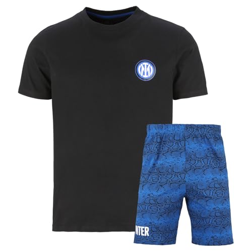 Inter Pyjama Court Homme Ligne Home en 100% Coton, Maille Noire et Short Bleu avec détails imprimé Serpent et Logo Officiel, S
