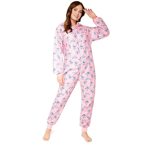 Disney Pyjama Stitch Combinaison Pyjama Femme Stitch Grenouillère Adulte en Polaire Tailles Femme et Fille Ado S au XL (Rose Stitch, L)