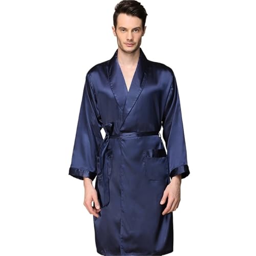 GMGQJST Peignoirs de Bain Peignoir en Soie for Homme, Grande Taille 5XL, Pyjama en Satin à Manches Longues, Peignoir, Chemise de Nuit, vêtements de Nuit, Kimono uni(Blue,M)