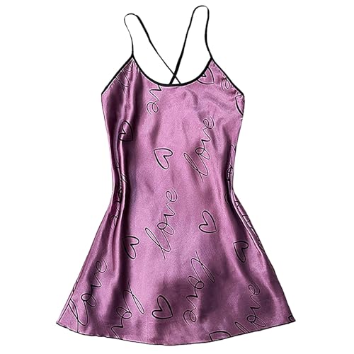 Chemise de nuit d'été pour femme - Nuisette élégante et sexy - Pour pyjama en satin - Chemise de nuit Curvy - Sous-vêtement de nuit - Slip - Vêtement de lit - Ensemble pyjama