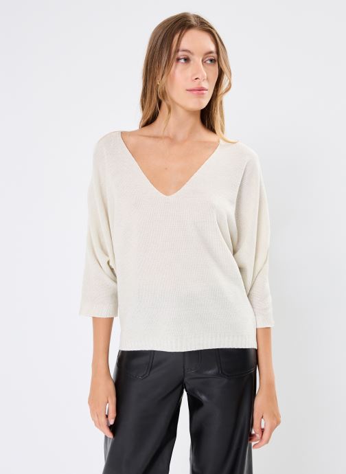 Pieces Vêtements Pcnuria 3/4 Sleve Knit Top Fc pour Femme Female L 17152154-Cloud Dancer Detail:GOLD LUREX