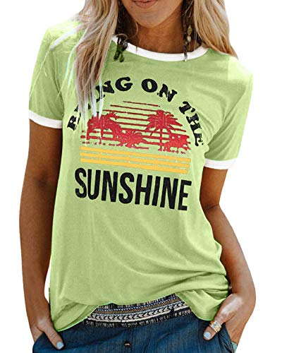Heekpek T-Shirt Femme Été Chemisier Chic Blouse Col Rond Tops Manches Courtes Grande Taille Coton Imprimé, 1Vert, L