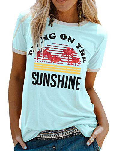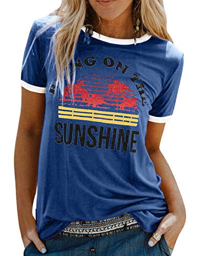 heekpek T-Shirt Femme Été Chemisier Chic T-Shirts Blouse Col Rond Tops Manches Courtes Tee Grande Taille Coton Tee Shirt Imprimé,1Navy,S