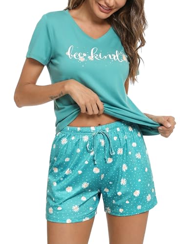 Merry Style Pyjama pour femme ensemble deux pièces en coton confortable short et haut pour femmes Vêtement d'Intérieur Femme MS10-177 (Menthe/Bleu Foncé S)