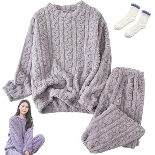 KEYULI Pyjama en flanelle pour femme - Chaud - Hiver - Confortable - Pjs Y2k - Doux et chaud - 2 pièces - Vêtements de nuit moelleux en peluche (violet, taille unique)