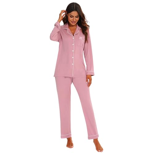 Pyjama personnalisé en Viscose de Bambou Rose à Manches Longues, avec initiales, Pyjama Doux monogrammé pour Femme, Tenue d'intérieur, Pyjama, Tenue de Nuit