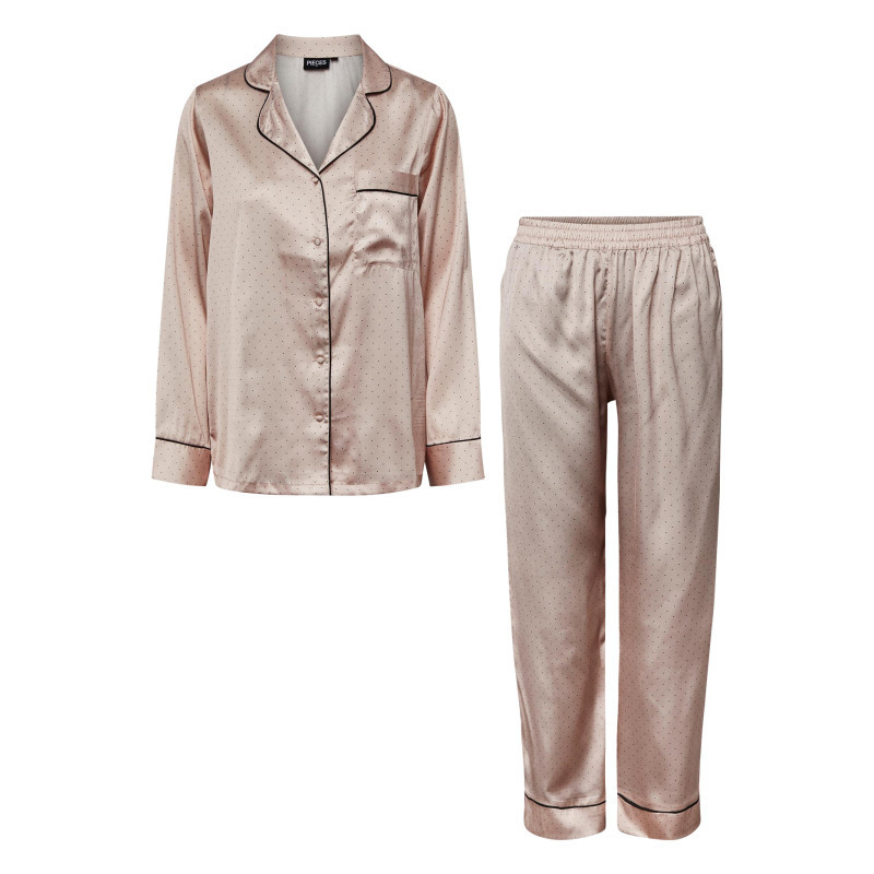 Pyjama long FEMME Pieces avec manches longues et col cranté rose pâle à pois
