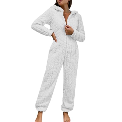 chuangminghangqi Pyjama une pièce pour femme - Long - Hiver - Costume animal - Costume adulte - Combinaison douillette - En polaire - Vêtement avec capuche, Chat blanc, XXL