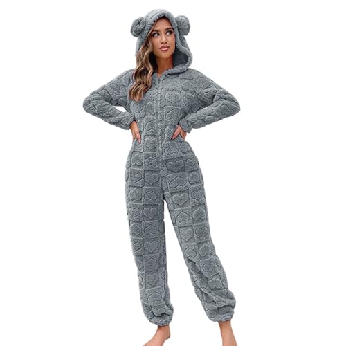 chuangminghangqi Pyjama Une pièce pour Femme avec Capuche et Fermeture éclair (Ours brun-7126, XXL)
