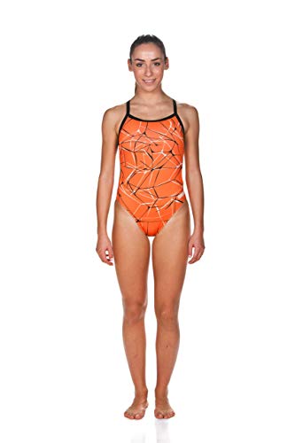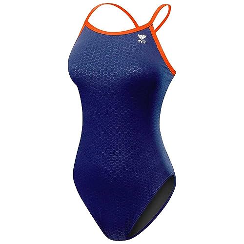 TYR Maillot de Bain pour Femme Hexa Diamondfit, Femme, Maillot Une pièce, DHEX7A, Bleu Marine/Orange, 50