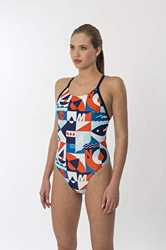 ARENA Maillot de Bain 2 pièces Red USA Tie Back MaxLife pour Femme, Femme, Maillot de Bain Une pièce, 003065, Top - Bleu Marine/Multicolore, 28