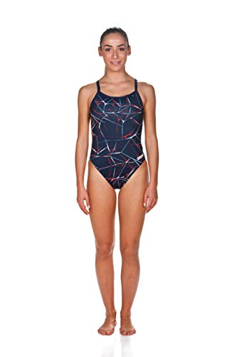 ARENA Maillot de Bain pour Femme Water Challenge Back One Piece, Femme, Maillot de Bain Une pièce, WTRCHLG, Bleu Marine/Rouge, 22