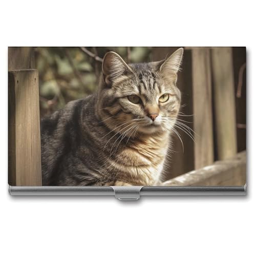 Porte-cartes de visite en métal fin, motif chat sur une clôture en bois, organiseur de cartes professionnel, pochette pour cartes de visite, porte-cartes de crédit, portefeuille pour hommes et femmes,