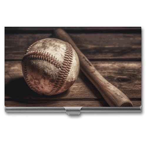 ZLFDSKGY Porte-cartes de visite fin en métal pour homme et femme Motif baseball sur bois Porte-cartes de visite professionnel