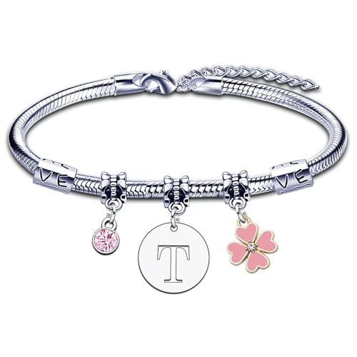 Bracelet pour Femme Fille A B C D E F G H I J K L M N O P Q R S T U V W X Y Z Bracelet Lettre Initiale Pendentif Cadeau pour Amie Fille Sœur Collegue Maman Couple Anniversaire Saint Valentin (1T)