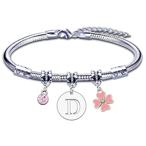 Bracelet pour Femme Fille A B C D E F G H I J K L M N O P Q R S T U V W X Y Z Bracelet Lettre Initiale Pendentif Cadeau pour Amie Fille Sœur Collegue Maman Couple Anniversaire Saint Valentin (1D)