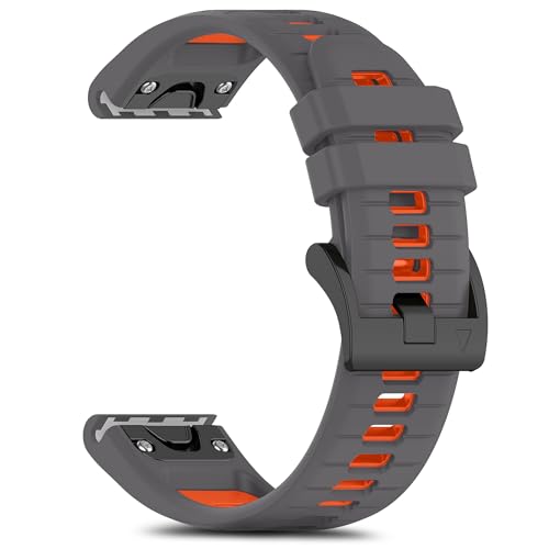 RoYiio Bracelet Silicone pour Garmin Quatix 8 47mm/Quatix 7 Pro/Tactix 8 47mm/Fenix8 47 mm/Fēnix 7Pro/6Pro Bracelets Respirant pour Epix 2/Descent G2/Fenix E (QuickFit 22mm, Anthracite Gris Orange)
