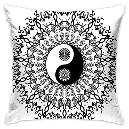 Ying Yang Throw Pillow Cushion Cover, Vintage Yin Yang Mandala Pattern Ethnic Motivational Oriental Bohemian Design,Decorative Square Accent Pillow Case,18 X 18 Inches,QueenFull Black White_2
