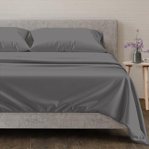 Mayfair Linen 100% Egyptian Cotton Queen Size Sheet Set - 4 PC 600 Thread Count Egyptian Cotton Sheets Set for Queen Size Bed (Dark Grey), Soft, Cooling, Luxury Hotel 16" Deep Pocket Sateen Bedsheet
