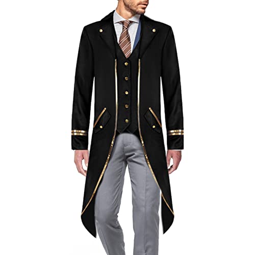 Veste Queue de Pie Homme Grandes Tailles, Vêtements Medieval Manteaux pour Hommes Col Revers Couleur Uni Manche Longue Renaissance Vintage Gothique Long Blousons pour Punk Cour Victorienne de Smoking