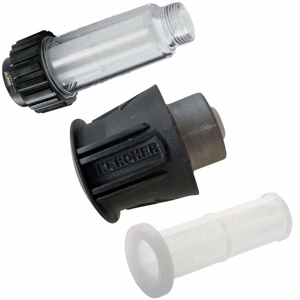 Vilgftyiet Kit de filtres pour nettoyeur haute pression avec valve et adaptateur Quick Connect, lot de 3 pièces pour Karcher G3/4, camping-cars, bateaux, pompes de jardin, noir et blanc