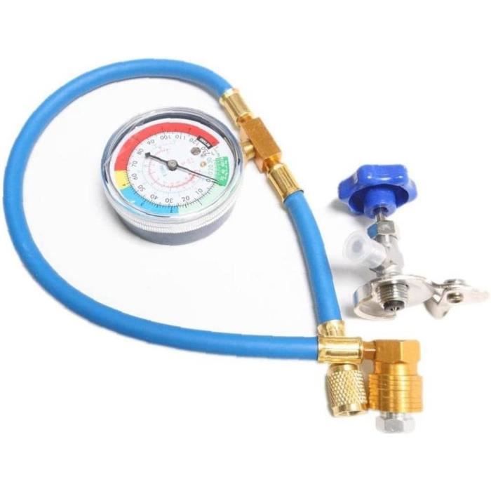 Tuyau de charge CA avec jauge, kit de tuyau de recharge de réfrigérant AC, 1/2 peut appuyez sur une vanne de distribution et des ajustements de coupleur rapide R134A pour le réfrigérant de la climati