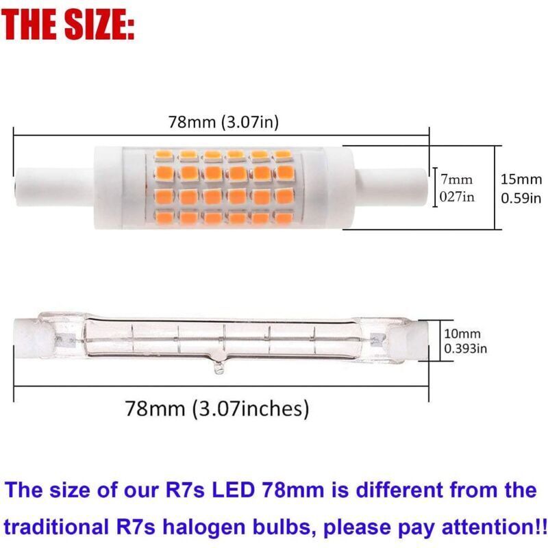COITROZR Ampoule R7s LED 78mm à lumière Variable, 5W J78 Lampe linéaire 500lm, 78mm R7s Corn Light, égale 45W Lampe halogène,AC100V - 230V (2 Packs) (Color : Warm White, Size : 78mm)