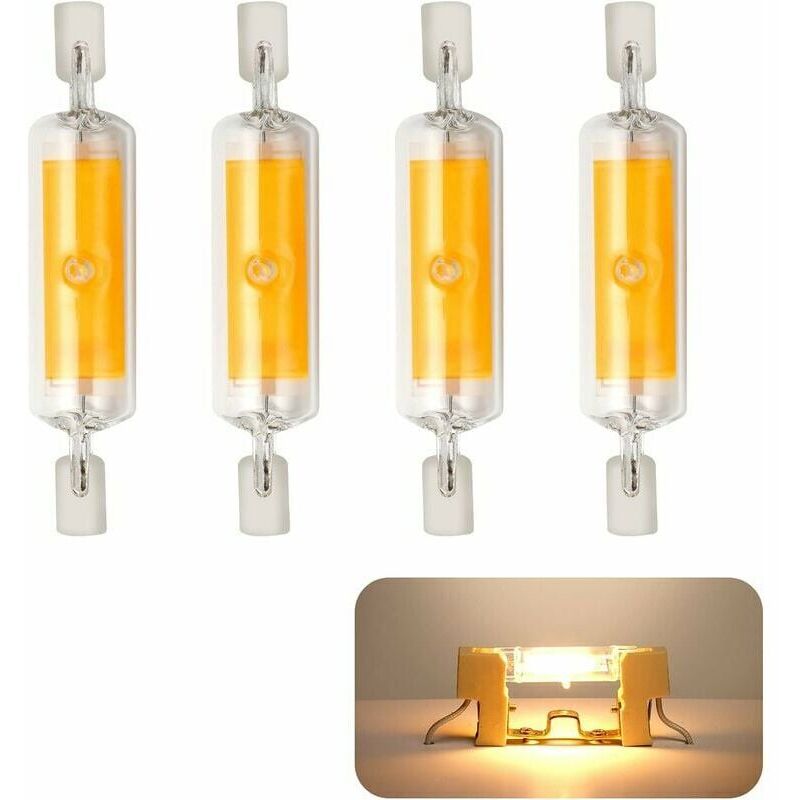 4 pièces R7S LED 78mm ampoules dimmable 10W 230V, ampoule LED blanc chaud 3000K, 800LM COB ampoule LED, 360° angle de faisceau, Equivalent à 80W